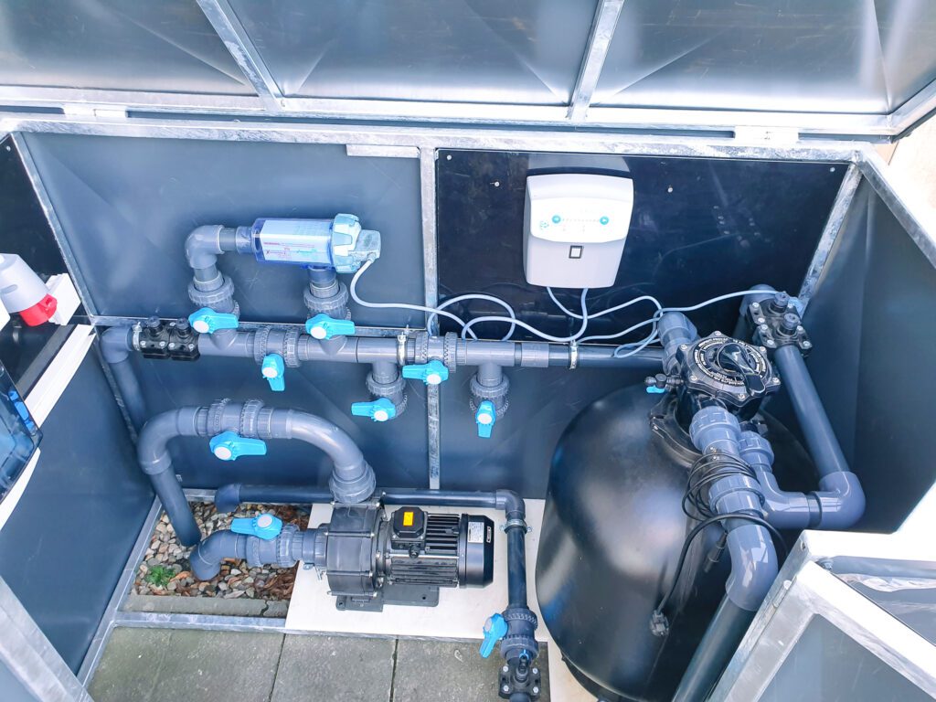 Po letech testování a hledání nejlepšího řešení jsme zakotvili u pískové filtrace. Tento způsob filtrování vody simuluje čištění vody v přírodě: voda proudí přes vrstvu křemičitého písku, která zachytává drobné nečistoty a vrací ji zpět do bazénu. Větší nečistoty již před tím posbírá košík ve skimmeru.