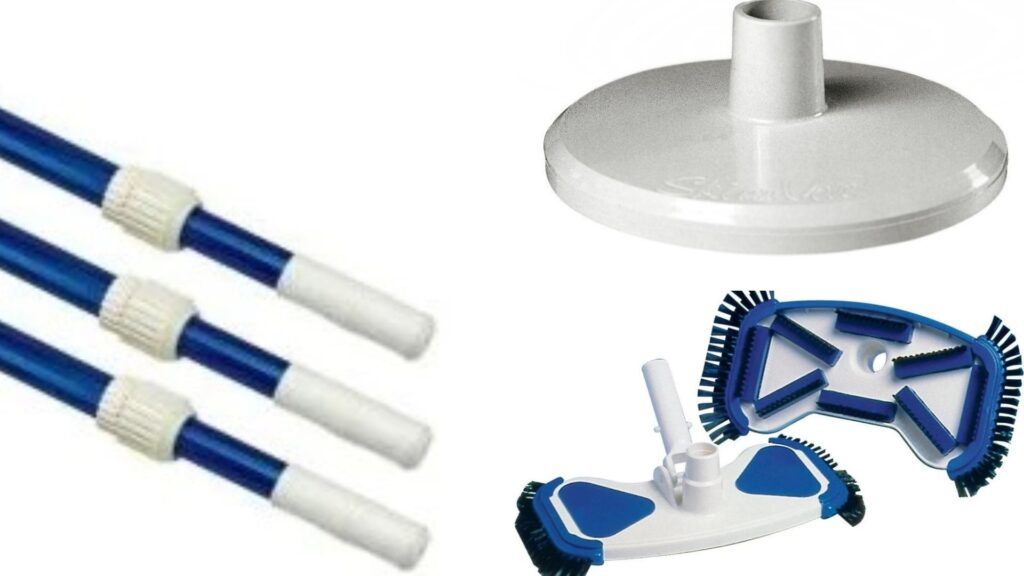 Mechanický bazénový vysavač se skládá ze tří částí a napojuje se na filtrační okruh bazénu. Součástí je vysávací hlavice, hadice a teleskopická tyč, pomocí které s vysavačem manipulujete v bazénu. K vysávání budete dále potřebovat redukci (Skim-vac).