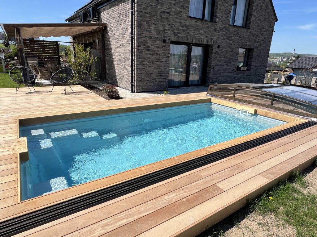 Vzhledově působí svěže, moderně a zákazníci po nich prahnou. Mají jen jednu drobnou nevýhodu, ostré rohy se o něco hůř čistí než u obdélníkových bazénů s kulatými rohy, ale tomu se dá předejít dobře navrženou filtrací.