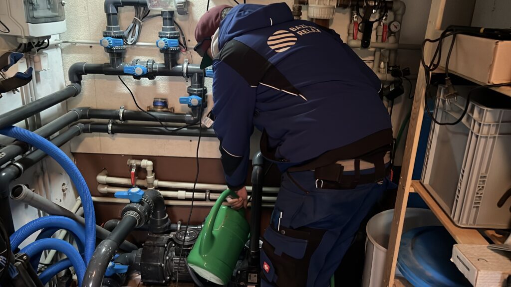 V případě že máte bazénovou technologii nad úrovní hladiny vody v bazénu, je nutné ručně zalít filtrační čerpadlo a čerpadlo protiproudu vodou, aby bylo schopné následně nasát vodu ze sacího potrubí a nasátá voda vytlačila veškerý vzduch z výtlačného potrubí. Poté je vždy potřeba zkontrolovat případné netěsnosti.