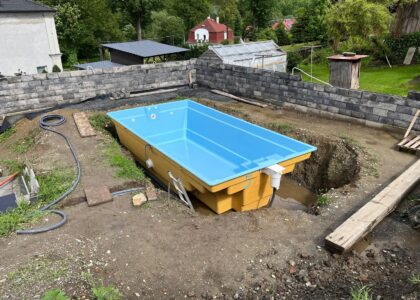 Do vašich kompetencí patří výkop a betonáž základové desky, a následné usazení námi dovezeného bazénu.