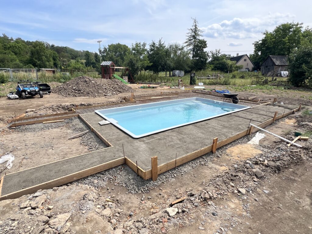 5. Zafixování bazénu suchou betonovou směsí