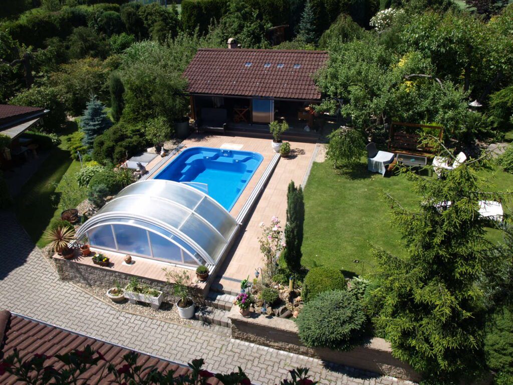 Oproti trávě jsme postavili náš nejprodávanější laminátový bazén Malorka. Do rozměru 6 x 3 x 1,4 m se vejde 18 m3 vody. I kdybyste ho vždy na podzim vypustili a na jaře znovu napustili, trávu nedožene. Přitom ani to není nutné a většina zákazníků zapuštěný bazén kompletně vypustí jednou za několik let. Každoročně je třeba odpustit jen cca třetinu před zimou, aby se bazén mohl zazimovat a nehrozilo poničení technologií vlivem mrazu. V průběhu sezóny samozřejmě nějakou vodu vycákáte, případně se odpaří, něco se také spotřebuje při proplachování filtru (počítáme s propíráním jednou za měsíc, ale bohatě stačí tuto činnost provádět jednou za dva měsíce).